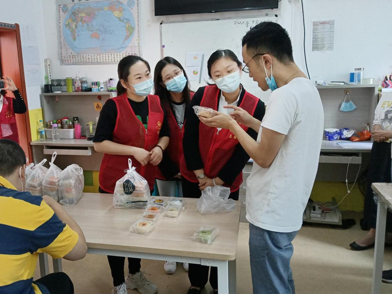 志愿者們給愛德慈佑院的學(xué)生們帶去了中秋月餅和時(shí)令水果,與他們就生活環(huán)境、身體狀況展開交流。其中一名學(xué)生手捧月餅滿含感激地對(duì)志愿者們說謝謝,并說出一個(gè)個(gè)月餅的名稱時(shí),大家很激動(dòng),因?yàn)樗麄兩眢w特殊,語言功能有障礙,能說出一句完整的話已十分不易。同時(shí),老師們對(duì)中山大廈能夠長(zhǎng)期關(guān)愛他們特殊青少年表示了衷心感謝,對(duì)多年以來一直踐行的“博愛”精神給予了高度贊揚(yáng)。