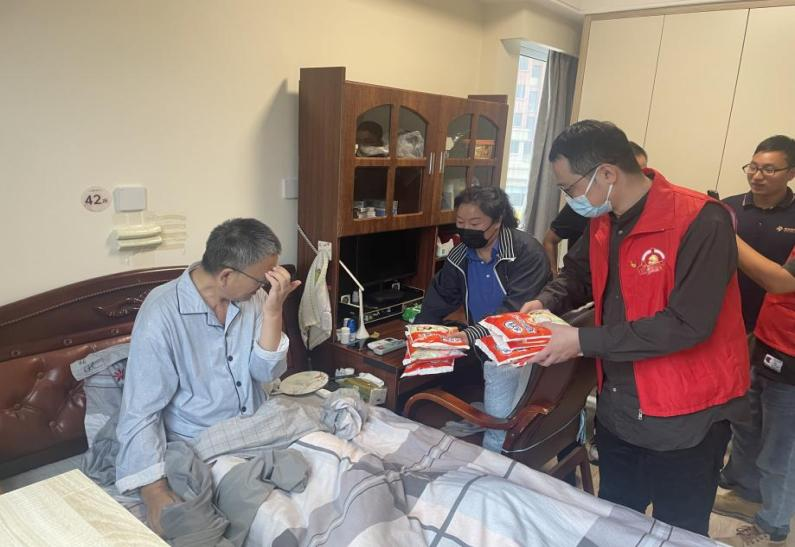 活動當(dāng)天,支部的青年黨員們冒雨將精心準(zhǔn)備的慰問品逐一的送到老人們的手中,并與老人們親切交談,詢問身體狀況,祝愿老人們心情愉悅,身體健康,老人們也紛紛表示感謝黨,感謝組織的關(guān)心。有“銀城頤養(yǎng)”機(jī)構(gòu)的悉心呵護(hù),有組織的慰問關(guān)愛,我們晚年生活的很好很舒心。