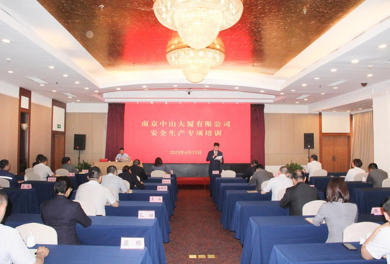 為深入開展學(xué)習(xí)貫徹習(xí)近平新時(shí)代中國特色社會(huì)主義思想主題教育,認(rèn)真學(xué)習(xí)領(lǐng)悟習(xí)近平總書記關(guān)于安全生產(chǎn)的重要講話、重要指示批示精神,切實(shí)牢固樹立安全紅線意識(shí)。6月13日下午,南京中山大廈結(jié)合“安全生產(chǎn)月”開展安全生產(chǎn)專項(xiàng)培訓(xùn)。