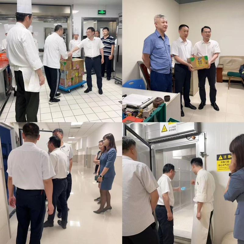 朱承宇來(lái)到餐飲廚房及工程值班室,為機(jī)關(guān)餐廳、餐飲部、外賣(mài)廚師及工程巡檢員等一線職工送上清涼飲料,朱承宇充分肯定了大家在各自崗位上的堅(jiān)守付出及工作成果,叮囑大家勞逸結(jié)合,在認(rèn)真工作的同時(shí)要注意自身安全,切實(shí)做好防暑降溫,同時(shí)要求酒店要嚴(yán)格落實(shí)各項(xiàng)防暑降溫措施,切實(shí)維護(hù)廣大職工的安全健康權(quán)益,抓好安全生產(chǎn)工作,確保高溫一線職工平安度夏。