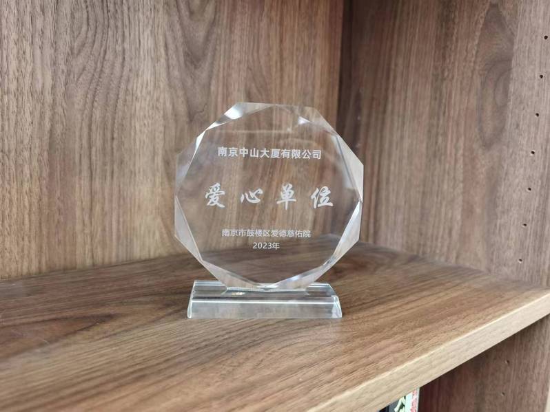 近日,南京中山大廈有限公司收到了一個特殊的春節(jié)禮物,由愛德慈佑院送來的“愛心單位”的水晶獎杯,對南京中山大廈長期以來對關(guān)心關(guān)愛孩子們成長表示誠摯的感謝。
