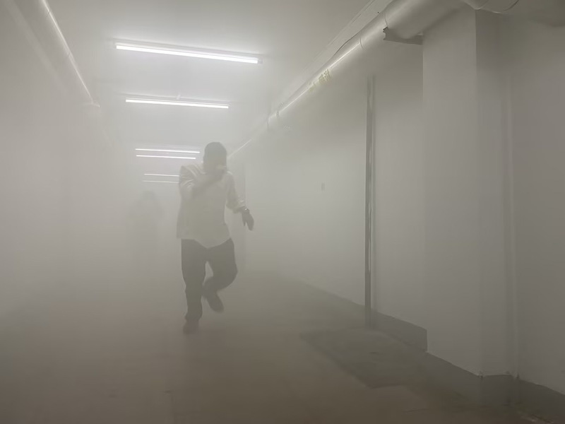 宣講培訓(xùn)結(jié)束后,參會(huì)人員在工作人員的指揮下有序從四樓友誼廳沿逃生路線疏散至安全地帶。
